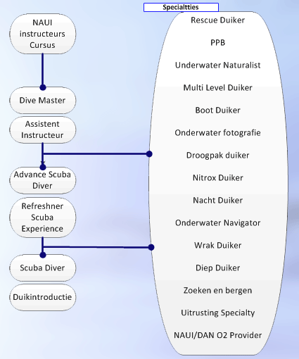 Klik hieronder in het schema voor meer informatie over de desbetreffende duikcursus: